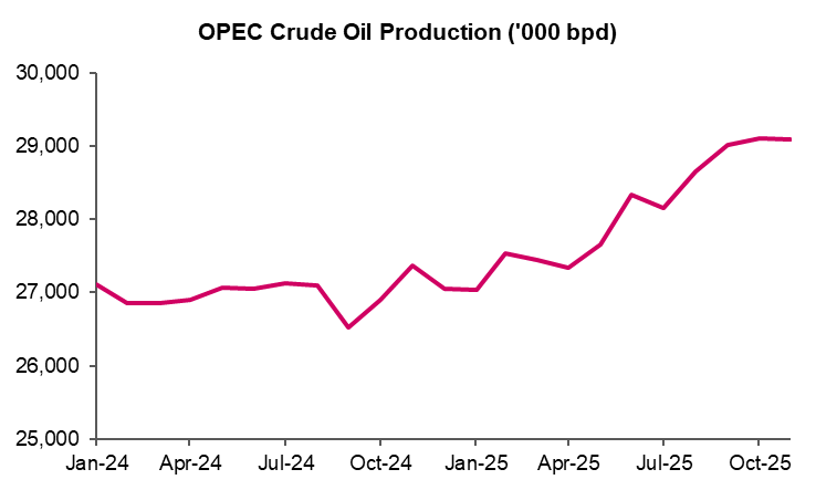 At the same time, supply management remains politically and fiscally constrained. Many producers face rising budget pressures and are increasingly reliant on volume rather than price to stabilise revenues, limiting their willingness to cut output even as prices soften. Ironically, this dynamic means that a sharp fall in prices could ultimately prove self-correcting: lower prices would undermine producer economics, curb investment, and force higher-cost supply out of the market, tightening balances again over time.