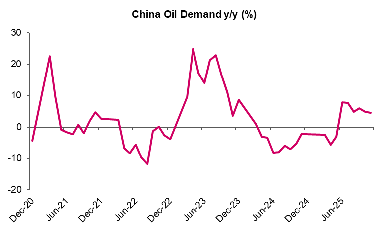 Forecasting oil prices has become about managing ranges. On the downside, a more constructive geopolitical environment, particularly any credible easing of Russia –Ukraine tensions could compress remaining risk premia. That said, Russian crude has continued to find its way into global markets via China and India despite sanctions, suggesting that much of this supply is already priced in. Meaningful downside from here would likely require a material relaxation of sanctions rather than diplomacy alone.