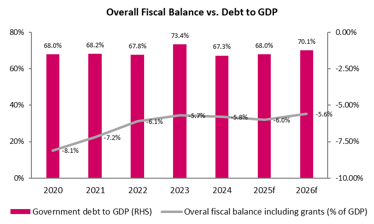 Risk‑off sentiment, currency volatility, and inflationary pressures—particularly in housing, water, electricity, gas, transport, and other fuels, which account for 25% of the inflation basket—could push fixed‑income rates higher. When paired with external financing constraints, this may further increase the cost of financing the primary deficit, leading to an even wider fiscal deficit.