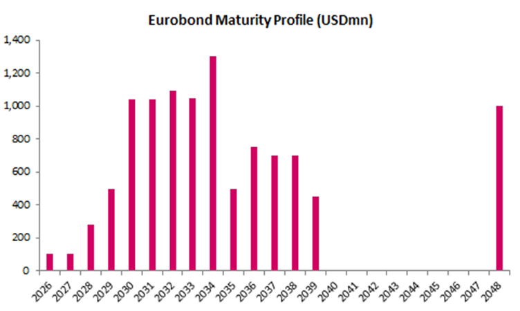 We believe the Eurobonds are likely to continue to underperform, whilst the local currency is likely to depreciate further, albeit at a slower pace. Investor concern about the sovereign’s outlook continue with questions themed around policy credibility resurface in the absence of an IMF programme. We however believe that the proactive liability management over the last two years by the Kenyan government provides some headroom.